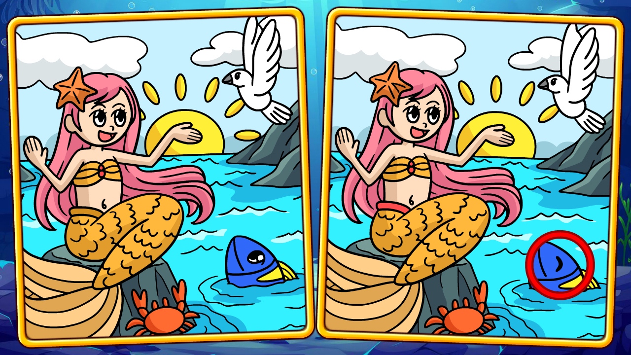 Cliquez ou appuyez pour révéler les différences dans des scènes sous-marines vibrantes mettant en vedette des sirènes et la vie marine ! Aiguisez vos capacités d’observation et plongez dans l’aventure océanique !