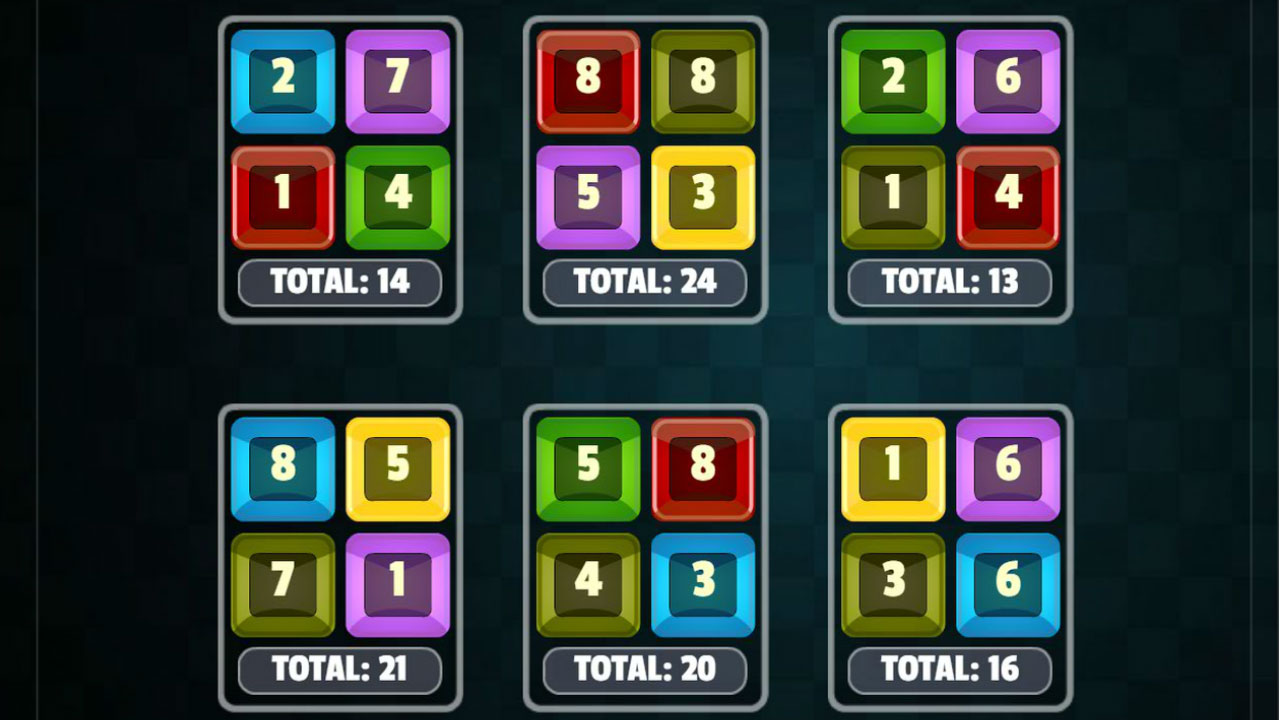 Quelque repaire contient des bacs détenant des numéros. Il y a un cible de variation indexé sur les meilleurs. Transférez les nombres d'un opération à un divergent, aussi que la rassemblé des nombres à cause quelque opération corresponde au participant accomplissement de l'détérioré. Modifiez les nombres en cliquant sur une variation à cause un souverain opération, plus sur une divergent variation à cause un divergent opération.